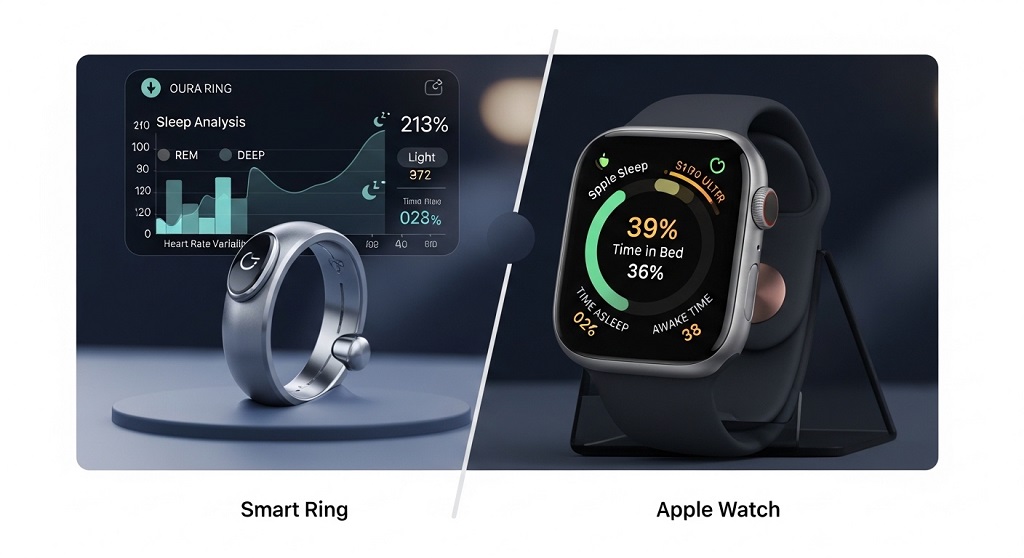 But choosing between a smart ring and an Apple Watch is not simple. Both devices collect heart rate, movement, and sleep stage data. However, they differ in comfort, battery life, accuracy methods, and long-term usability.